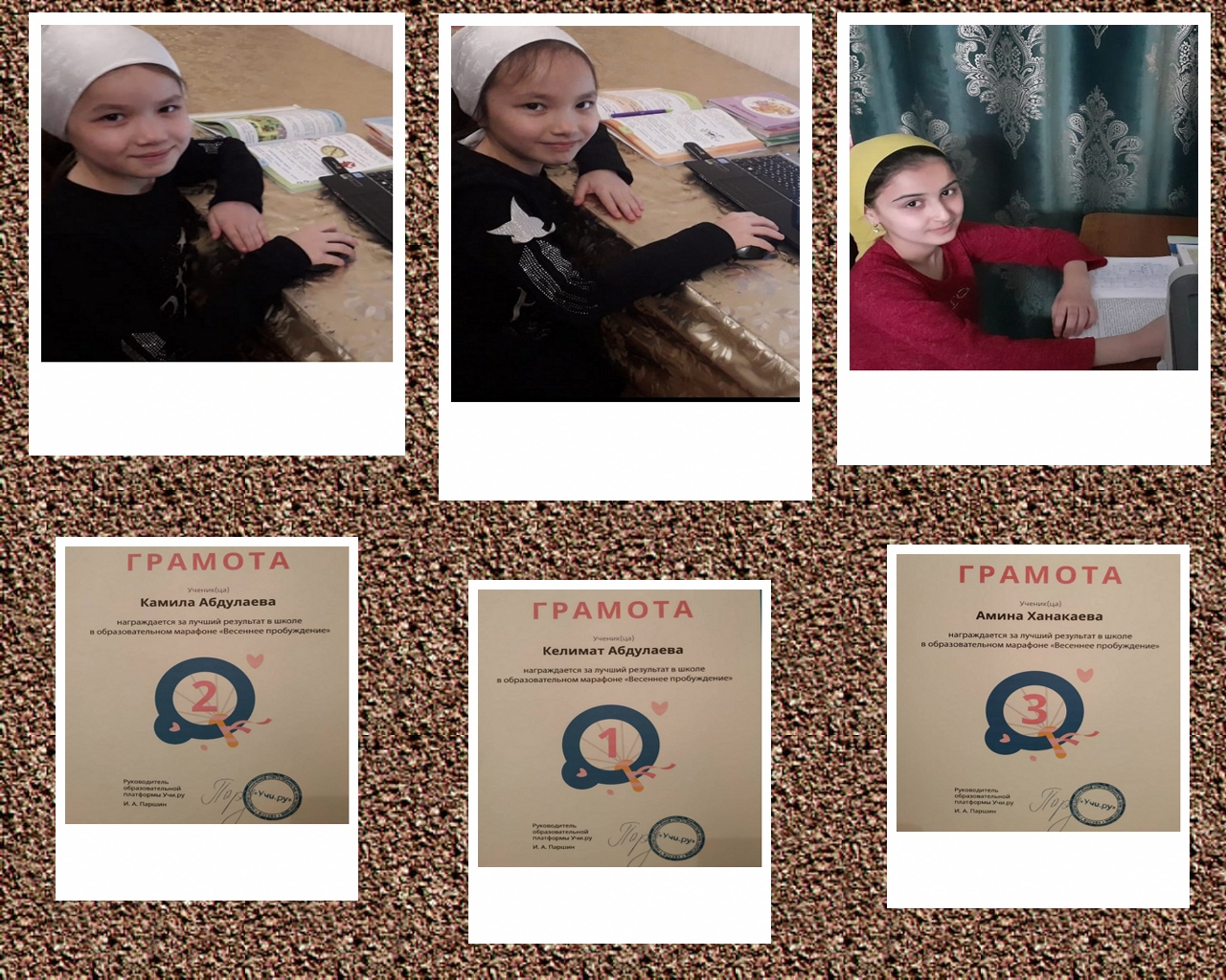 12.04.2020Давно мы не подводили итоги марафонов на образовательной платформе Учи.ру. В последнее время ребята стали активнее на ней заниматься. На днях завершился марафон "Весеннее пробуждение". Это очередное соревнование по количеству решённых карточек между учениками внутри одного класса и среди всей школы. А вот три ученицы с наилучшими результатами. Поздравляем! Удачи!