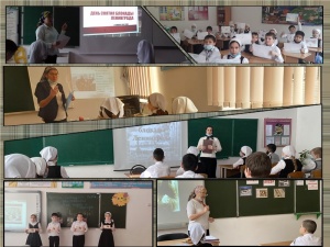В 5-8 классе прошел час Памяти «Блокада Ленинграда». Вначале был продемонстрирован тематический образовательный видеоролик, подготовленный на основе рассказов жителей блокадного Ленинграда. После просмотра видеоролика рефлексия, цель которой – сосредоточить внимание учащихся на важнейших оценках и эмоциональной стороне восприятия и памяти о блокаде Ленинграда. Классный руководитель рассказала о гражданском подвиге жителей и защитников блокадного Ленинграда, о значении обороны города в общей Победе в Великой Отечественной войне.