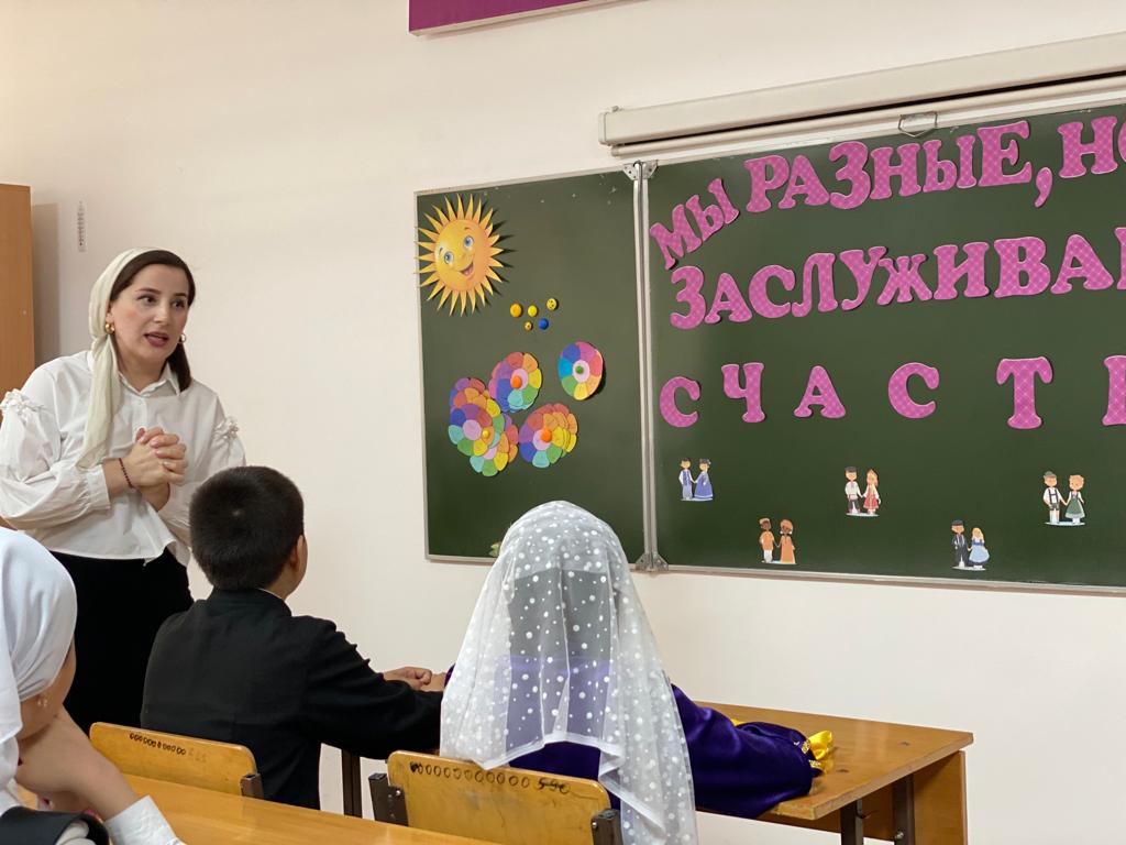 02.03.2022В рамках муниципального конкурса профессионального мастерства «Лучший социальный педагог года-2022» Даудова Л.Б. провела с детьми классный час на тему «Мы разные, но все заслуживаем счастья»В ходе классного часа, Даудова Л.Б. закрепила с детьми понятие слова «толерантность», провела интересные упражнения, ну а завершился классный час исполнением песни про дружбу народов!Желаем удачи Даудовой Л.Б!😍