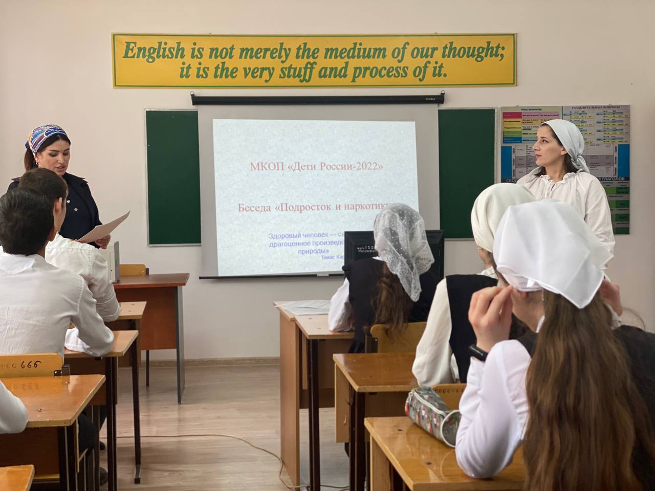 12.04.2022Инспектором ПДН Балаевой А.Р. проведена беседа на тему: «Подросток и наркотики». Целью проведения беседы являлось познакомить учащихся с информацией об отрицательном действии и негативных последствиях злоупотребления психоактивными (наркотическими и психотропными) веществами, формирование у учащихся отрицательного отношения к наркотикам, введения здорового образа жизни. С обучающимися 9, 11 класса подробно был обсуждён вопрос о юридической ответственности за административные правонарушения и уголовные преступления в сфере незаконного оборота наркотиков. Инспектор ПДН предостерегла подростков от неприятных ситуаций, рассказав о новых формах вовлечения несовершеннолетних в незаконный оборот наркотиков (квесты, игры в сети Интернет, группы в соц. сетях и др.), а также привела конкретные примеры из практики работы.
