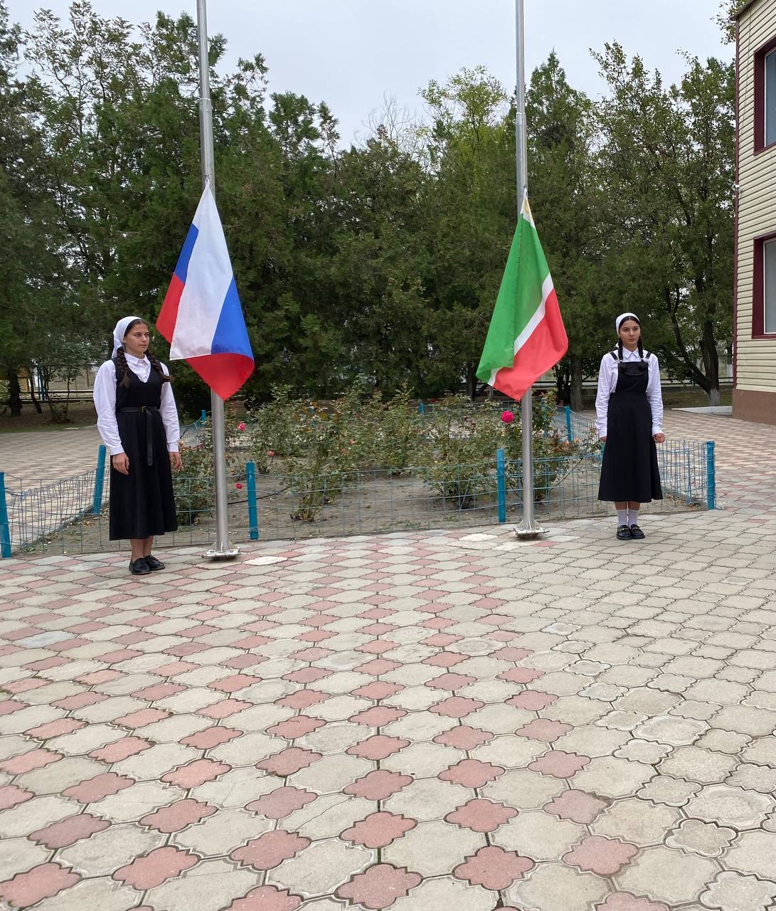03.10.20223 октября 2022 г.состоялось торжественное мероприятие, посвященное поднятию государственного флага РФ и ЧР. В своем обращении в адрес учащихся заместитель директора по ВР отметила, что флаг РФ и ЧР олицетворяет силу, мощь и национальное достоинство нашей страны, связь эпох и преемственность поколений, верность народа историческим традициям, неразрывную связь прошлого, настоящего и будущего, символизирует свободу и независимость. Почетное право поднять Государственный флаг Российской Федерации предоставили ученице 9 класса Абдурзаковой Заме, а почетное право поднять флаг Чеченской республики было предоставлено ученице 9 класса Тухиговой Шапаат. Под звуки гимна РФ и ЧР учащиеся подняли триколор на флагштоке рядом с центральным входом в образовательную организацию.