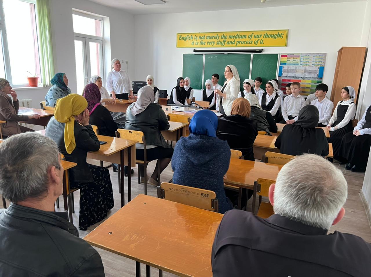 Перед родителями и учениками выступила заместитель директора Алиева Хеди Саидхусаиновна, познакомив родителей с Федеральным государственным стандартом как нормативным документом, определяющим требования к содержанию образовательных программ, планируемым результатам, условиям организации образовательного процесса в школе. На конкретных примерах предметных и личностных результатах родителям была показана ключевая отличительная черта обновленных ФГОС среднего общего образования: чёткость, конкретизация требований к образовательным результатам.