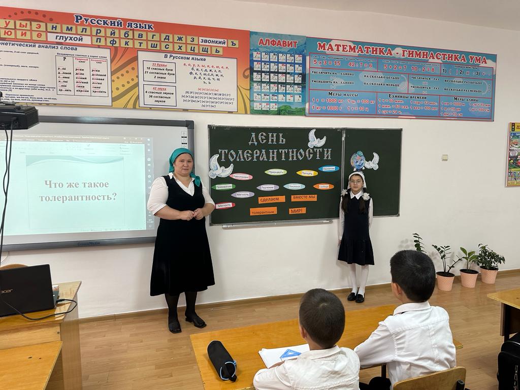 20.11.2023В МБОУ «Воскресеновская СОШ» 16.11 классный руководитель 4 класса: Саитова Ф.У. провела классный час на тему: «Толерантность». «Толерантность – путь к миру и личности»Международный день толерантности ежегодно отмечается 16 ноября. Этот праздник торжественно провозглашен в «Декларации принципов терпимости»ЮНЕСКО. Вопрос о толерантности сейчас в центре внимания всего мира. Но на сегодняшний день мало говорится об этом. Понятие "толерантность" воспринимается не только детьми, но и взрослыми по-разному, но дать понять ребятам, что такое толерантность, важно. 16 ноября в МБОУ «Воскресеновская СОШ» в 4 классе прошел классный час на тему: «Толерантность – путь к миру и личности». Классный час прошел под девизом: «Можно ли научиться толерантности».С вступительным словом к ученикам мероприятия обратилась,классный руководитель Саитова Ф.У.,которая говорила о том, что различия дополняют и обогащают общество. Чтобы жить в мире, людям надо научиться жить, решая проблемы и задачи на основе сотрудничества. Этому способствуют такие человеческие качества: взаимопонимание, взаимоуважение, ответственность, доброжелательность, сдержанность, уступчивость, терпимость.Целями данного мероприятие были: знакомство учащихся с понятием «толерантность» его происхождением значением и актуальностью его формирования как нравственного качества личности.В ходе мероприятия ребятам была предложена презентация, состоящая из трех частей. В первой части ребята узнали об истории праздника и его понятиях. Вторая часть была посвящена необходимости толерантности в международных отношениях, особенно в нашей многонациональной стране. А в третьей части разговор шел о терпимости в отношениях между близкими людьми, в семье, на учебе, между поколениями.Ребятам было предложено подумать о ценности личности каждого человека и о том, как часто нам не хватает внимания и понимания со стороны окружающих нас людей, не хватает терпимости и уважения по отношению друг к другу. В конце занятия были сделаны выводы о том, что надо беречь своих близких и всегда следовать золотому правилу морали « относиться к другому так, как мы хотим, чтобы относились к нам». И если живешь среди людей, то нельзя забывать, что каждое слово, каждый поступок, желание отражаются на окружающих людях. И надо делать все для того, чтобы людям, окружающим тебя, было хорошо.День Толерантности – это не только часть воспитательной работы, но еще и настоящий праздник для детей. В классе чувствовалось атмосфера дружбы, теплоты, взаимопонимания.