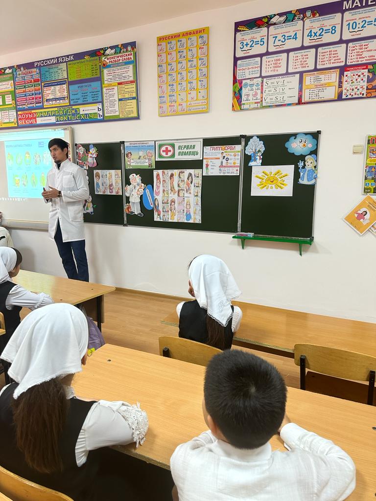 На классных часах проводились познавательные беседы «День чистых рук», «Здоровым быть не трудно», «Витамины я люблю – быть здоровым я хочу».«Уроки Мойдодыра», интерактивная викторина «Здоровый образ жизни». Состоялась встреча с медицинским работником Акбердыевым М.И. Он провел беседу по профилактике заболеваний Гриппа и ОРВ. Рассказал как можно предотвратить грипп,какие симптомы у ОРВ, что нужно сделать если человек заболел гриппом и к кому нужно обратиться. Какие меры предосторожности нужно соблюдать во избежание данного заболевания.