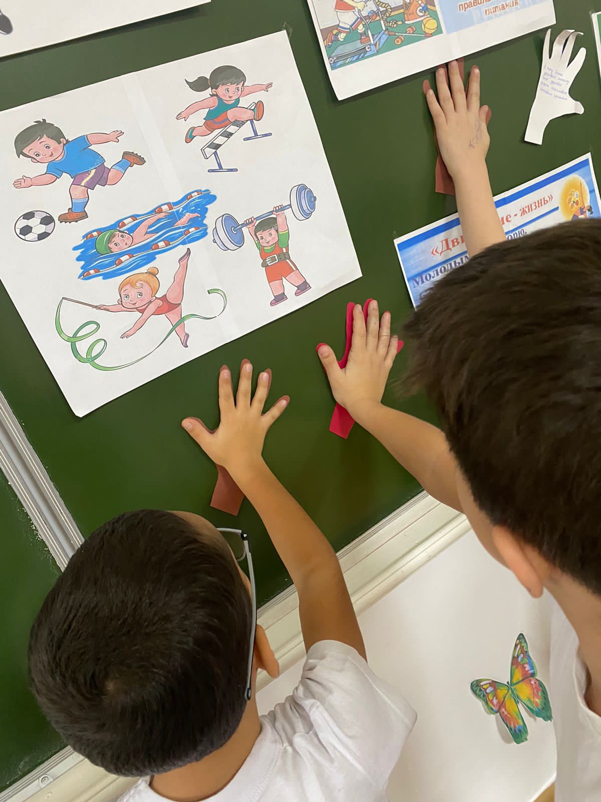 Педагог-психолог Заурова Х.С. с учащимися 5 классов провела акцию «Я хочу быть здоровым, потому что...» (каждый ученик обвел свою руку на листе бумаги и написал продолжение «Я хочу быть здоровым, потому что...»,каждый написал свою версию, для чего нужно ему здоровье, как он его хочет сохранить.