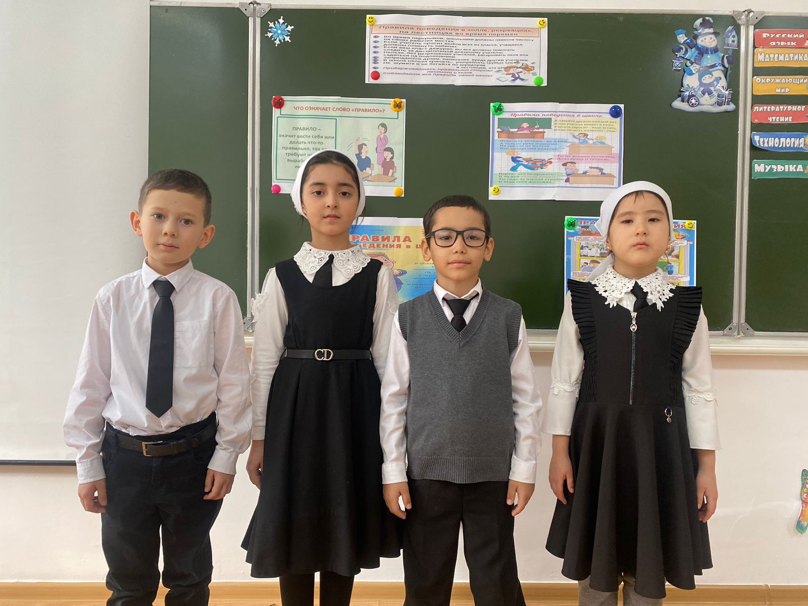 Далее поговорили с ребятами о том, как нужно вести себя на уроке, перемене и о том, что такое этикет. Также привела наглядный пример, в какой форме ученик должен прийти школу.