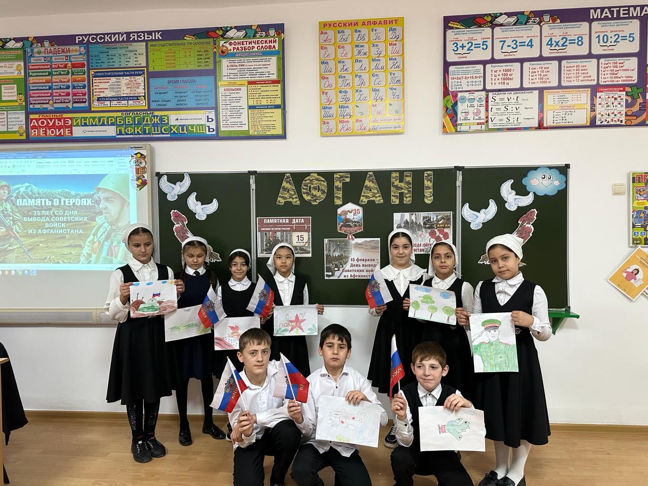 15.02.2024Сегодня, 15 февраля 2024 года, наша страна отмечает памятную дату 35-ю годовщину вывода советских войск из Республики Афганистан. 15 февраля 1989 года последнее подразделение 40-й армии СССР покинуло Афганистан. Эта дата в нашей стране стала Днём памяти воинов-интернационалистов. Классные руководители 3 и 6 класса Заурова Х.С. и Атюгеева Э.И. провели уроки мужества и классные часы, посвященные 35 годовщине вывода Советских войск из Афганистана.