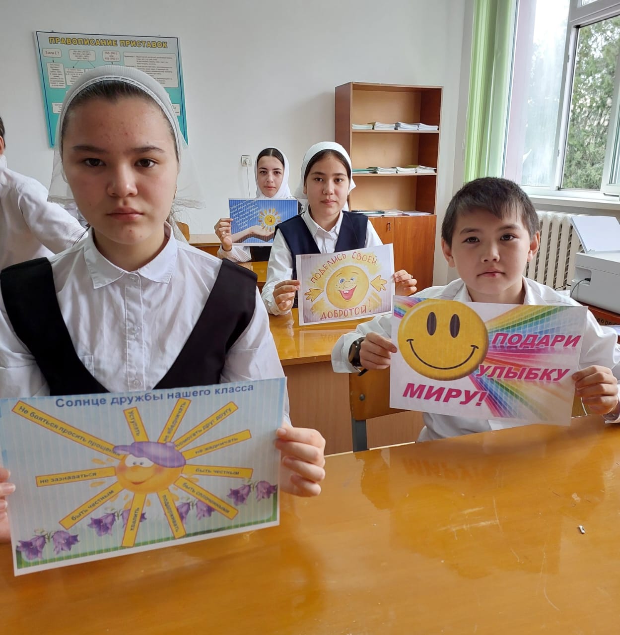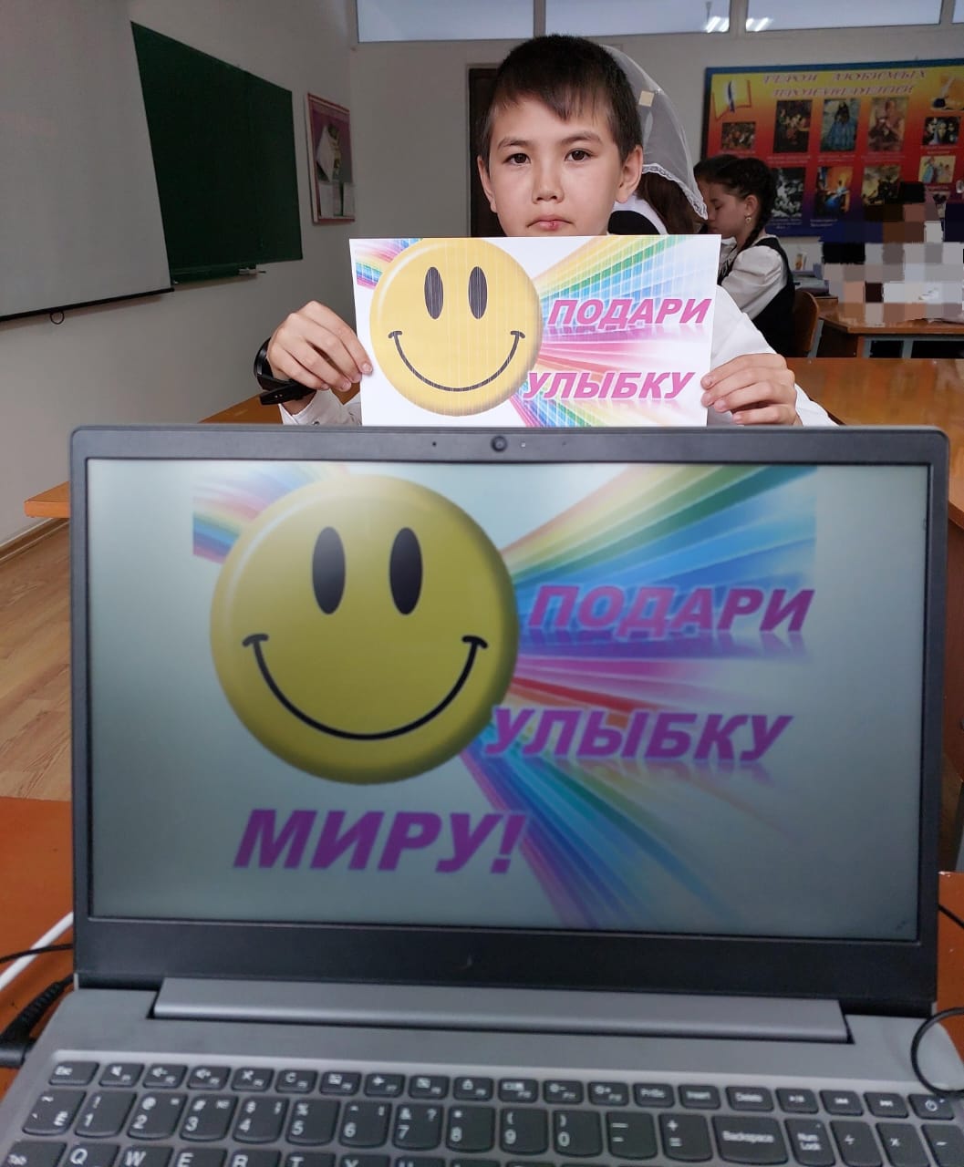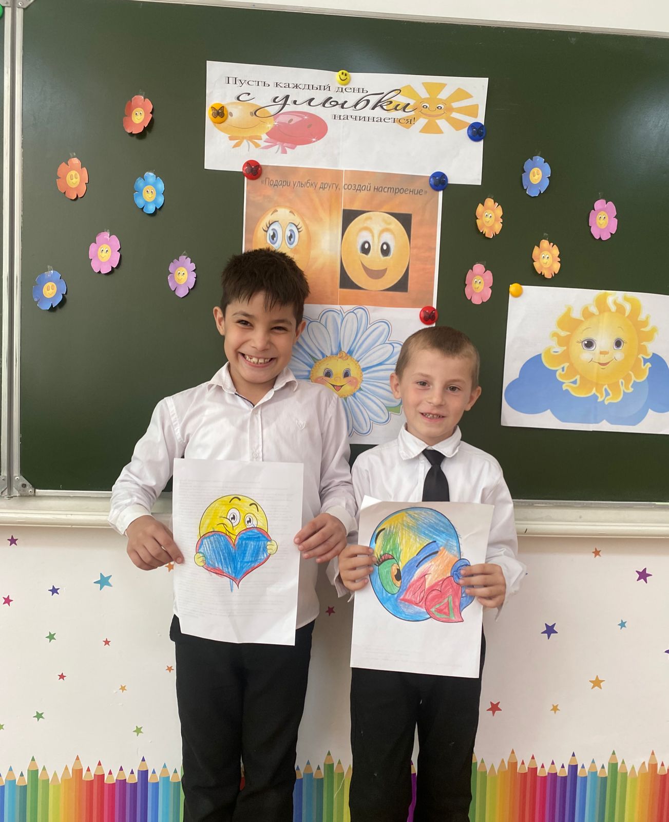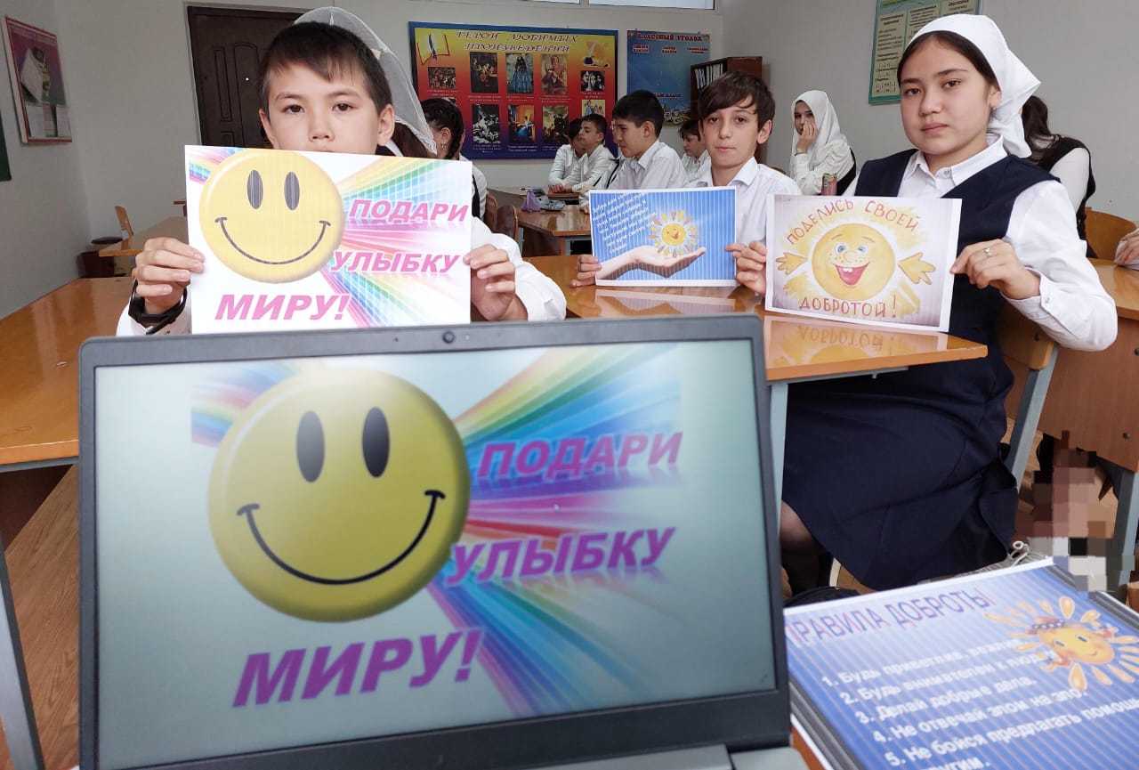 Этот день начался с того, что с самого утра, учителя получали от учащихся смайлик с улыбкой и уже с хорошим настроением шли на работу. Затем учащиеся прошлись по школе и делились улыбками со всеми сотрудниками учреждения, тем самым заряжали их хорошим настроением на весь рабочий день.