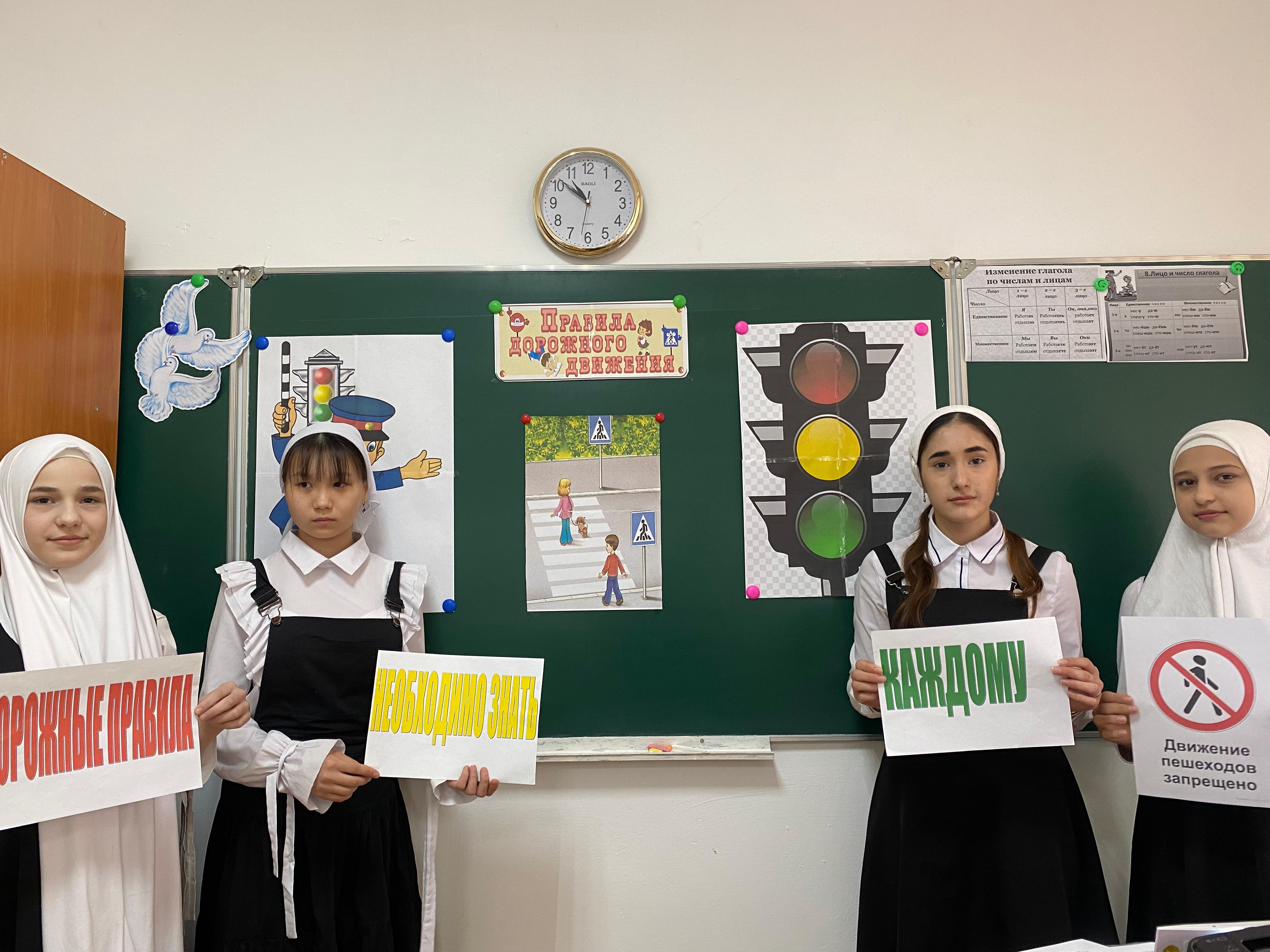 Среди обучающихся 5-9 классов был проведён классный час на тему: «Безопасность на дороге». Классный час начался с повторения ПДД . Обучающиеся вспомнили произведения , где упоминаются ПДД. Ребята активно объясняли правила дорожного движения, правила поведения на дороге, в школьном автобусе, рассказывали и показывали на школьных стендах, где нарушены, а где не нарушены ПДД.