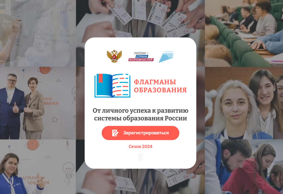 07.05.2024ПРОДОЛЖАЕТСЯ ПРИЕМ ЗАЯВОК НА УЧАСТИЕ В НОВОМ СЕЗОНЕ КОНКУРСА «ФЛАГМАНЫ ОБРАЗОВАНИЯ» ПРЕЗИДЕНТСКОЙ ПЛАТФОРМЫ «РОССИЯ – СТРАНА ВОЗМОЖНОСТЕЙ»