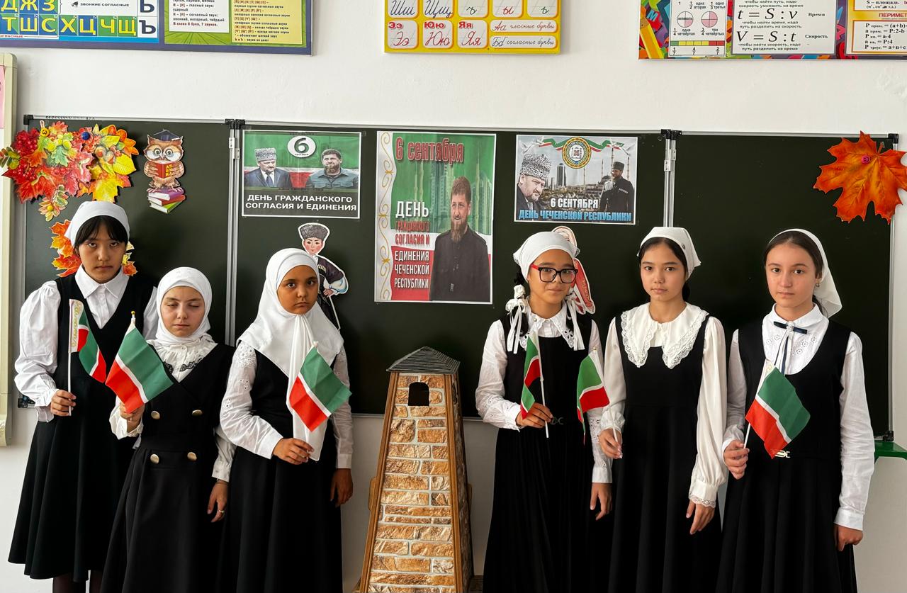 Этот праздник был учрежден 22 года назад с 2002 года в соответствии с Указом Первого Президента ЧР, Героя России Ахмат-Хаджи Кадырова. С тех пор шестое сентября стало знаменательной датой в новой истории Чеченской Республики. Во всех классах классные руководители рассказали обучающимся, что Ахмат-Хаджи Кадыров объединил расколотое общество и остановил произвол и беззаконие, проведя референдум, на котором жители Чечни приняли Основной закон ЧР и сделали свой выбор- жить в составе Российской Федерации. Сегодняшние граждане республики обязаны передать память о подвиге героя нации Ахмата-Хаджи Кадырова. Мы отдаем дань уважения всем Героям отдавшим свою жизнь за наше будущее. Классный руководитель 6 класса Заурова Х.С. провёла классный час «День Чеченской республики». Была проведена беседа о подвиге первого президента Чеченской республики, героя России Ахмата-Хаджи Кадырова. Была ярко, красочно оформлена доска. Дети читали стихотворения про свою Родину, столицу ЧР.
