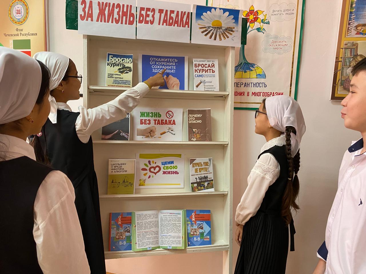 В библиотеке школьным библиотекарем Атюгеевой Э.И. организована книжная выставка «За жизнь без табака».На выставке представлены книги и журналы о вредном влиянии табака на здоровье человека, мерах, которые смогут помочь в борьбе с распространением табакокурения.