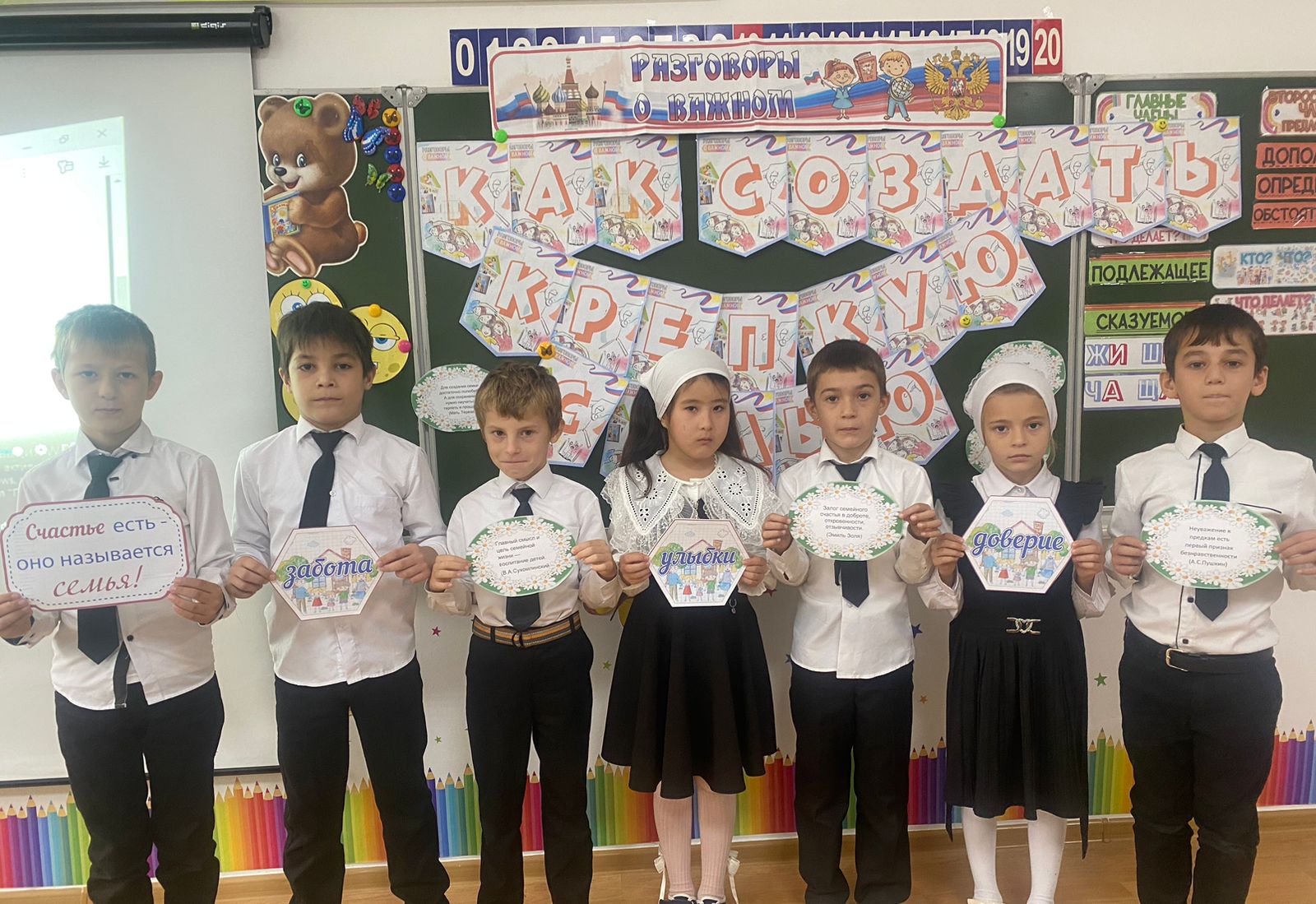 Особое внимание было уделено взаимоуважению, любви, нежности, взаимопониманию и взаимопомощи. Ребята осознали, что знание своего семейного древа и истории рода также играет важную роль.В завершении занятия ученики составили облако слов «Счастливая семья» и пришли к выводу, что семья – это наше место силы, наша опора и наш тыл. Они поставили перед собой задачу в будущем построить крепкие и счастливые семьи.