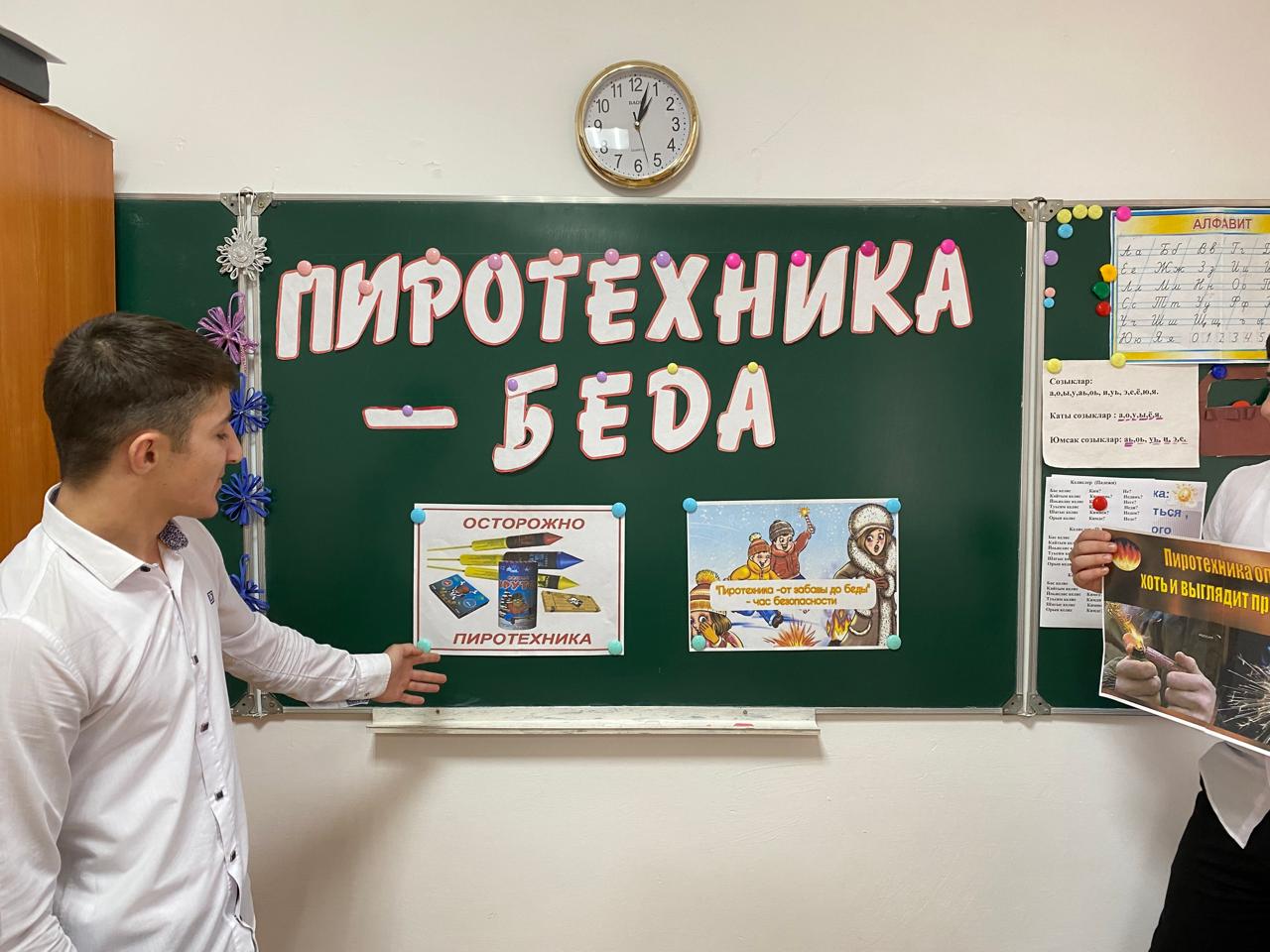 Раздали буклеты ,пожелала всем учащимся и их семьям счастливого и безопасного Нового Года, а также призвала всех быть ответственными и осторожными, не использовать пиротехнику в целях безопасности своего здоровья и здоровья своих близких.