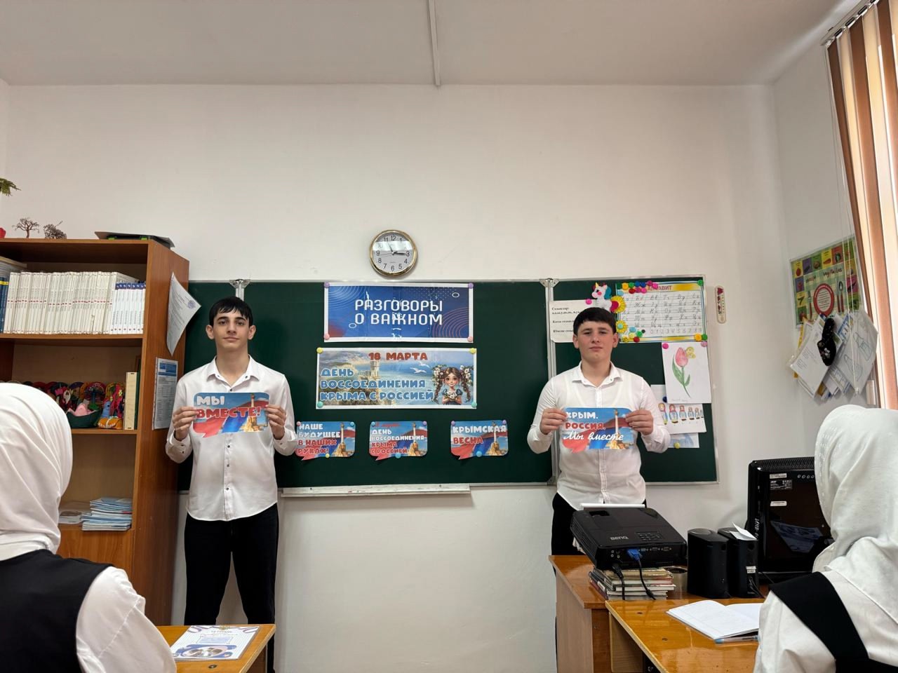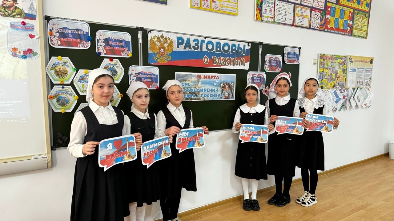 17.03.2025Сегодня 17 марта, в МБОУ «Воскресеновская СОШ» утро началось с традиционной линейки и поднятием флага РФ и ЧР. После линейки учащиеся проследовали на занятия курса внеурочной деятельности «Разговоры о важном», посвящённые «Дню воссоединения Крыма и Севастополя с Россией. 100-летию Артека».Цель проведённого занятия — формирование понимания исторического значения воссоединения Крыма и Севастополя с Россией и развитие представлений о детском центре «Артек» как национальном достоянии страны.Ученики начальных классов посмотрели и обсудили анимационные видеоролики «Как всё начиналось», «История и миссии Артека». Ребята узнали, как появился пионерский лагерь, какой путь прошел «Артек» за 100 лет и каковы его самые важные традиции. Также они попытались найти ответ на вопрос: почему именем детского центра назвали известный астероид, открытый в 1969 году в Крыму. Затем ребята посмотрели видеоролик «Говорим о важном с артековцами» и познакомились с его знаменитыми воспитанниками.